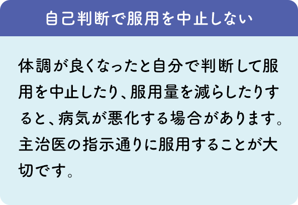 ここに記載されていること以外でも、気になることがあれば主治医または薬剤師・看護師に相談してください。
