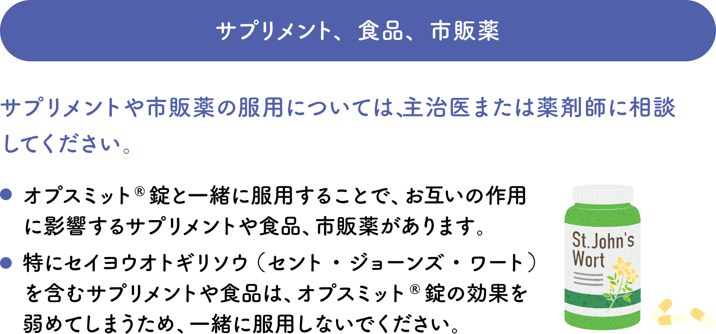 オプスミット®錠服用中(および服用中止後)は、
